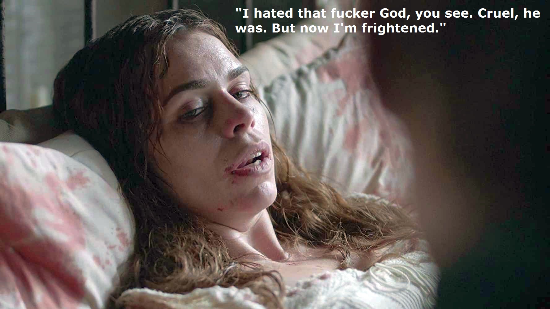 Chandler gone, Frankenstein discusses the afterlife with Brona.