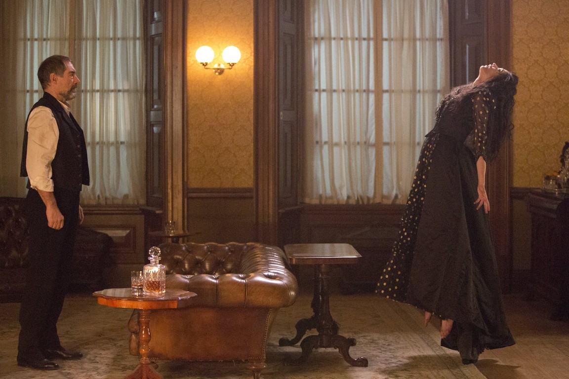 Realizing he cannot save Mina, Sir Malcolm glances at Vanessa,