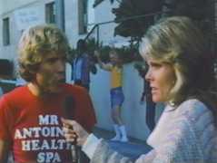 Good-looking Zoe (Cathy Lee Crosby) interviews a protester upset over the cop's inability to find "the mangler."